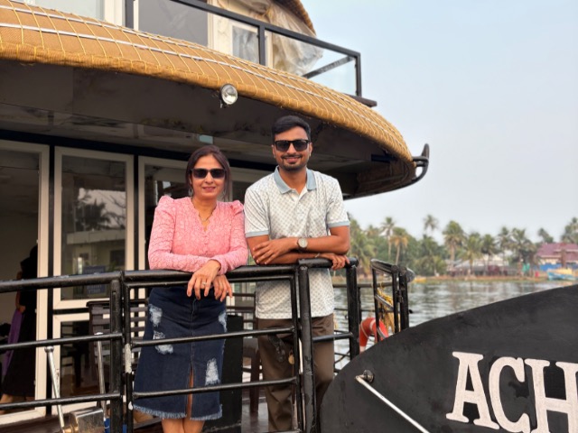 We started our journey in Munnar , where we visited beautiful tea plantations, spice gardens, and enjoyed cultural programs. Then we traveled to Thekkady for the tiger reserve and boating experience. After that we stayed in Alappuzha , where we had a wonderful stay in a deluxe houseboat.